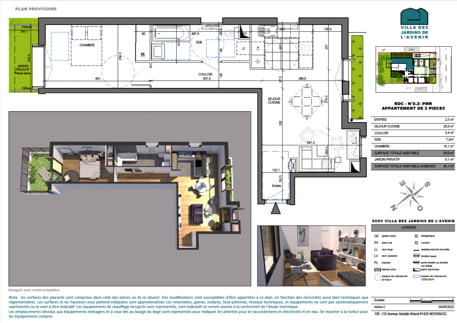 - Surface 56 m²